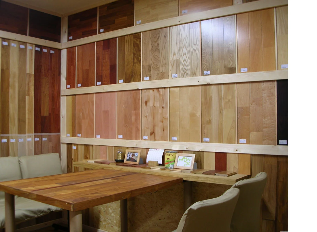 弊社はもともと住宅の和室内装材(天井材・造作材)や社寺建材(格天井や 構造材の彫刻など)を製造販売する建材メーカーとして全国の問屋様 材木店様、銘木店様を通して工務店様などにご購入を頂く、ルート販売で営業をしておりました。現在はフローリングなどのウエブ販売が主になりつつあります。ユーザー様のご要望や求められる商品は常に変化しています。そのニーズに応えるため変化を重ね、お客様の期待に応えられるよう努力していきます。