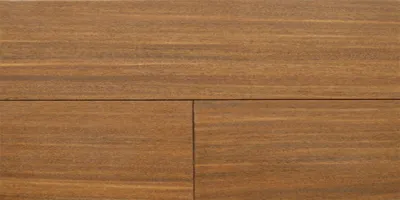 濃茶系の高級感あふれる色合い。表面は滑らかで光沢があり、チーク材のような重厚感が感じられるフローリングです。