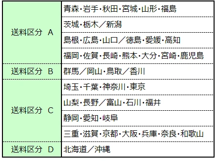 フローリング・パネリング送料区分・送料表