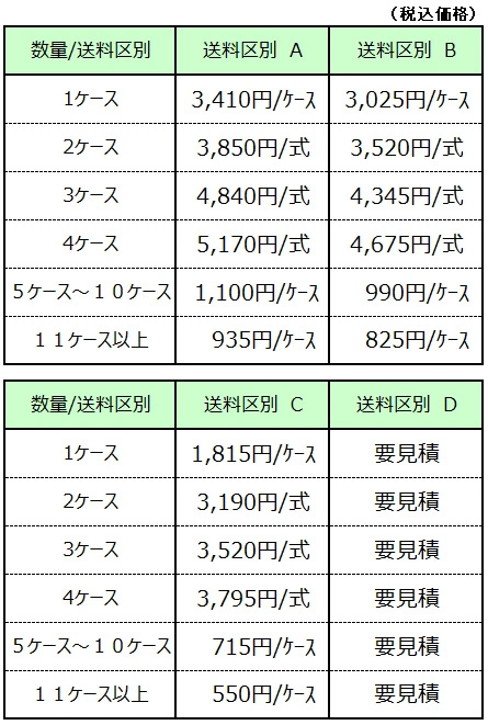 ご注文を頂きました商品、納品先などで送料が異なります。詳細は下記になります。 商品ご注文時に送料は加算されず、別途ご連絡となります。ご了承ください。